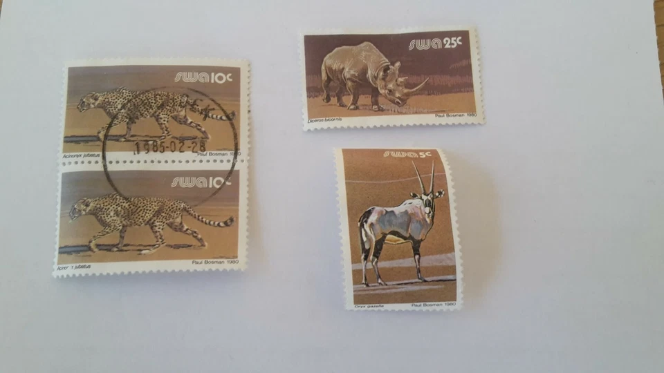 Four Stamps from Namibia - Wild Mammals - Cheetah, Rhino, Gazelle