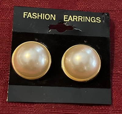 Vintage Faux Pearl Gold Tone Clip On Earrings