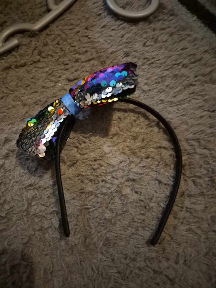 Black Head Band With Sequined Bow