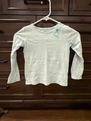 Carters Girls Size 6 Light Blue Long Sleeve Tee With Blue Bow, Rhinestones