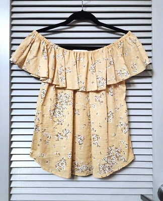 lt mustard flower off-shoulder top S urban outfitters earrings