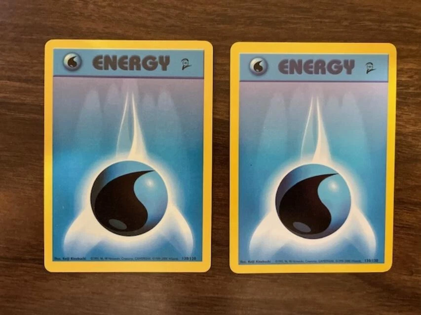 2X Pokémon Card Water Energy 130/130 Base Set 2 WOTC NM 2000