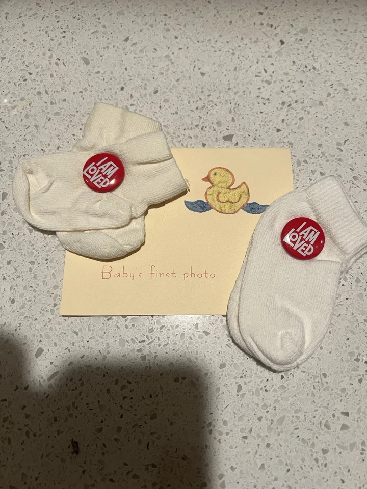 Baby Keepsake Socks “I Am Loved” with Pins – Baby’s First Photo Prop Gift