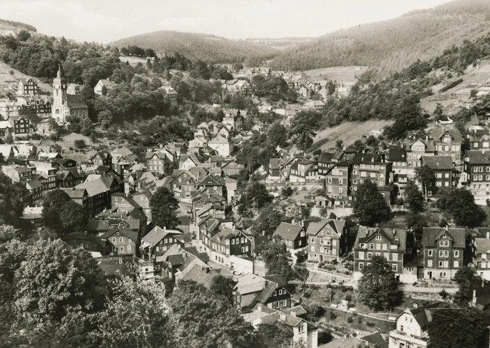 11-1213 Postcard Zella-Mehlis View from the Black Head Thuringian Forest GDR