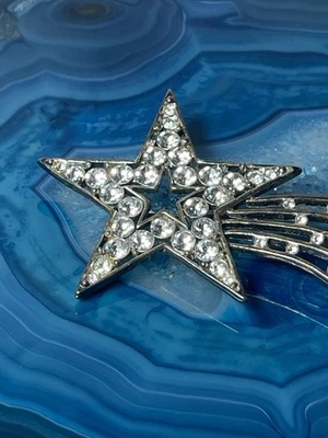 Silver Shooting Star With Rhinestone Dust Lightweight Lapel Pin