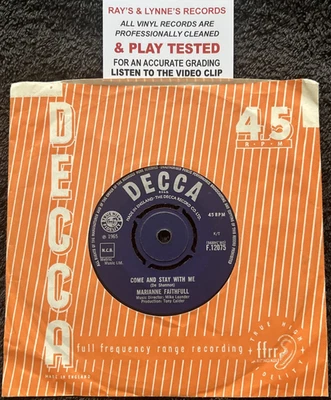 Marianne Faithfull Come And Stay With Me 7'' Vinyl 1965 CLEANED/TESTED VG VIDEO