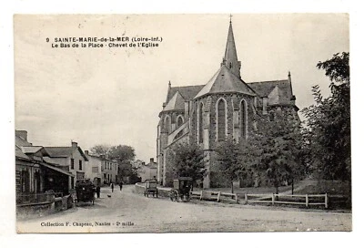 Old postcard -44 - SAINTE MARIE DE LA MER - bedside of the church and square - animated - voy1915