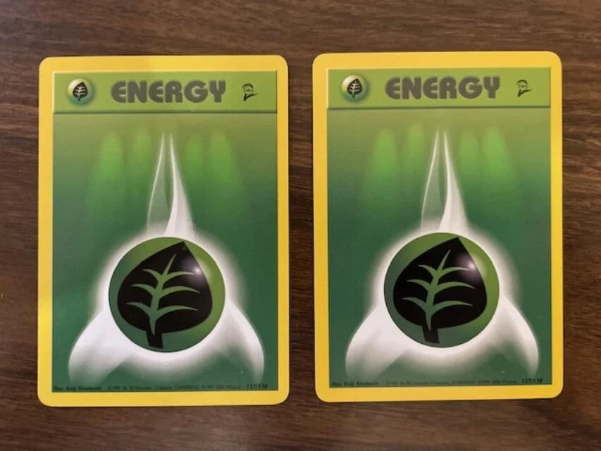 2X Grass Energy 127/130 Pokémon Base Set 2 2nd edition - Common - LP 2000