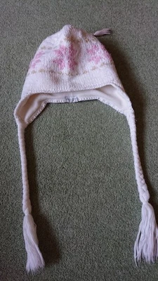Woman Winter Hat White Pink Half Fleece Lined One Size