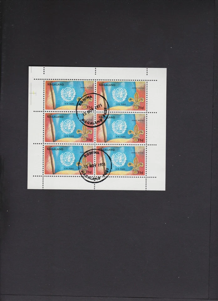 Nagaland - India Mini Sheet " UN Flag " First Day Stamp KOHIMA 15/11/71 " X