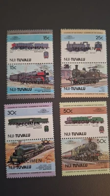Nui Tuvalu Railway Locomotives 4 pairs 8 values "MNH" overprint SPECIMEN leaders