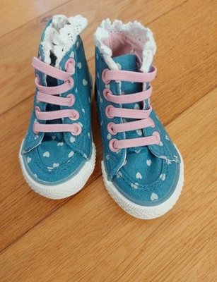 Baby girl mothercare Denim blue cat floral Pram Shoes uk 2 3
