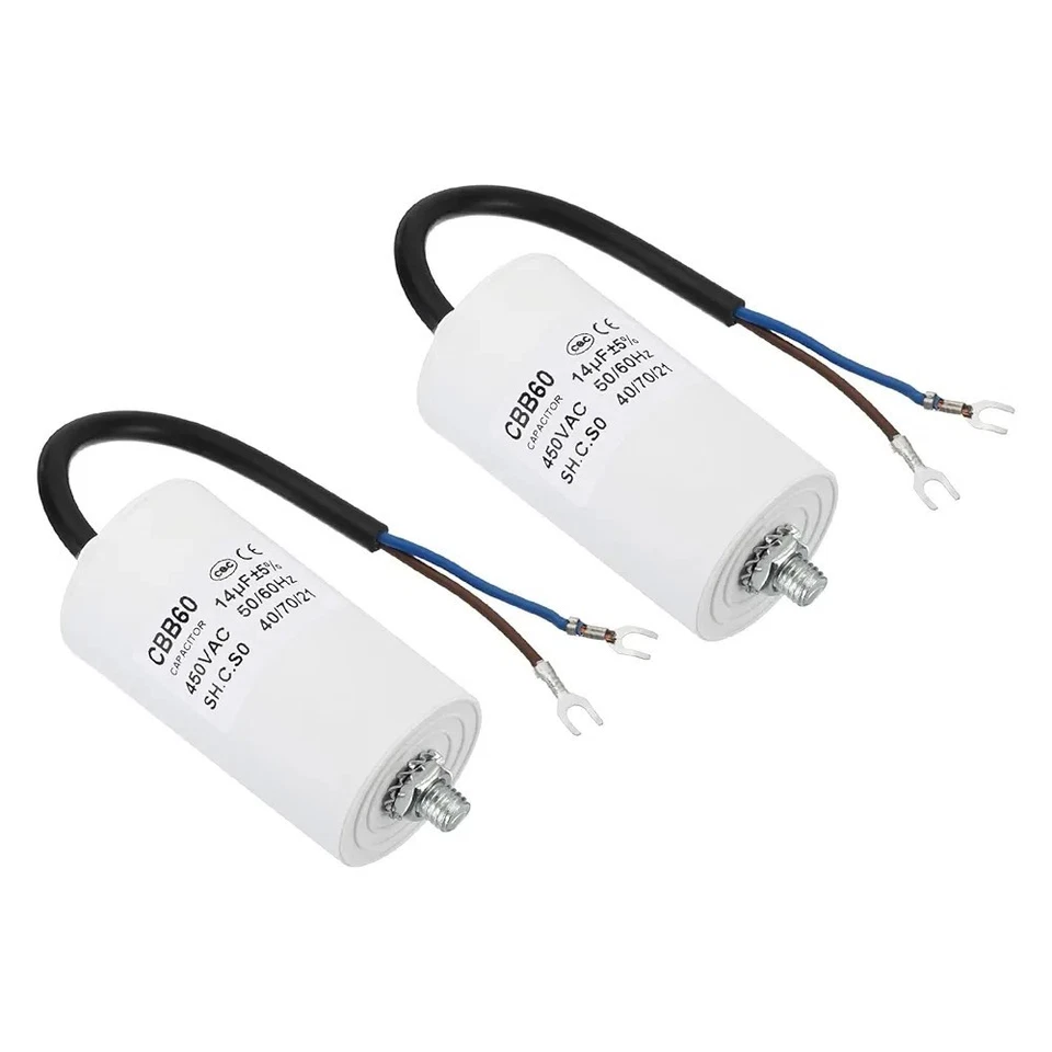 14uF Motor Run Capacitor CBB60 450V – 2 Pack with U Terminal (50/60Hz)