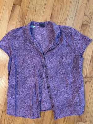 Eddie Bauer Women Purple Collar Casual Hawaiian Style Dress Shirt Petites 2XL