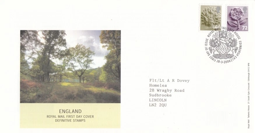 2006 44p & 72p England Definitive - Tallents House H/S FDC.