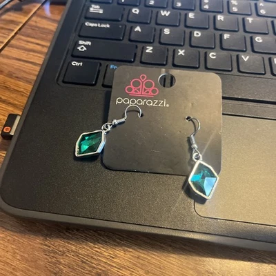 Vintage 18” Necklace Pendant gold tone emerald green stone Heart retro