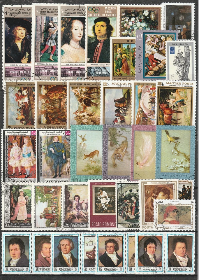 Art lot with stamps with paintings old master painting La peinture cuadro 3369
