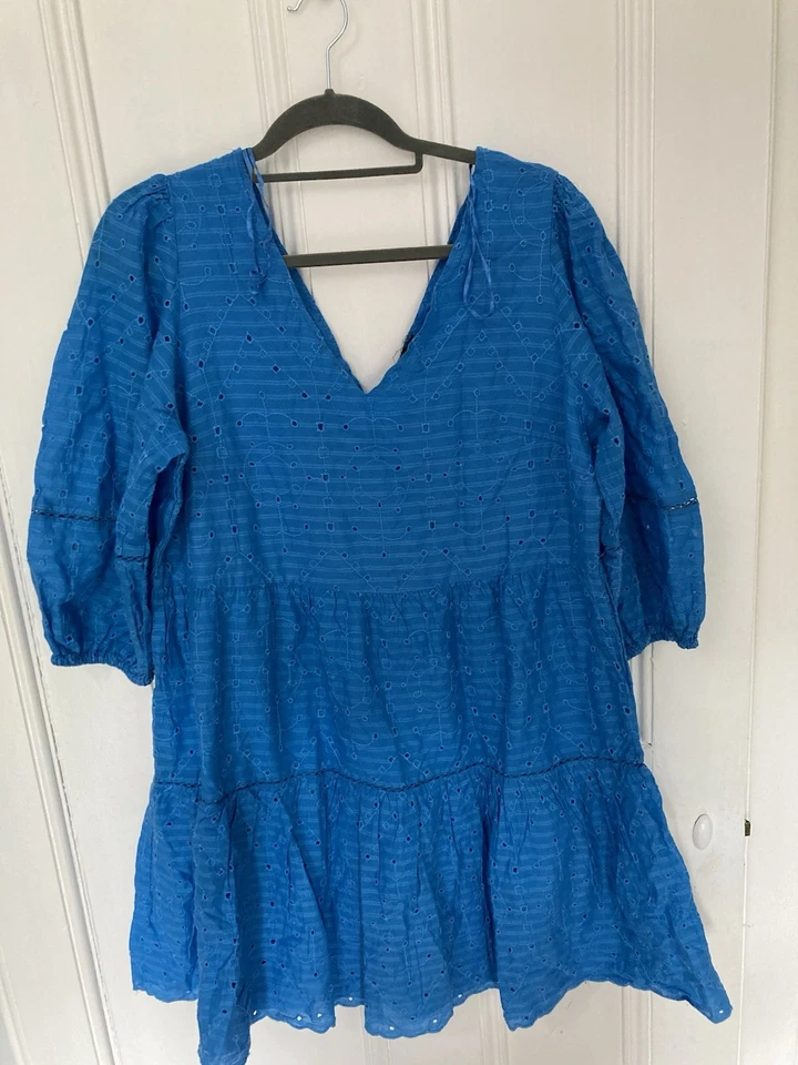 Cato Women’s Large Ivory Off White Top Duster Knit Sheer Embroidered Hippie Boho
