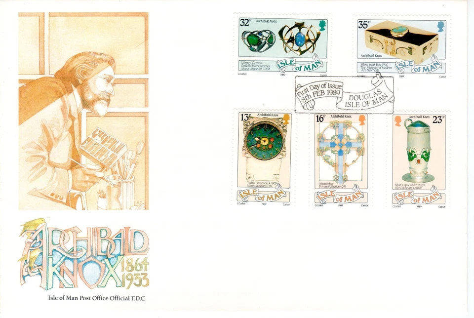IOM FDC 1989 125th Birth Anniversary of Archibald Knox SG 403-407