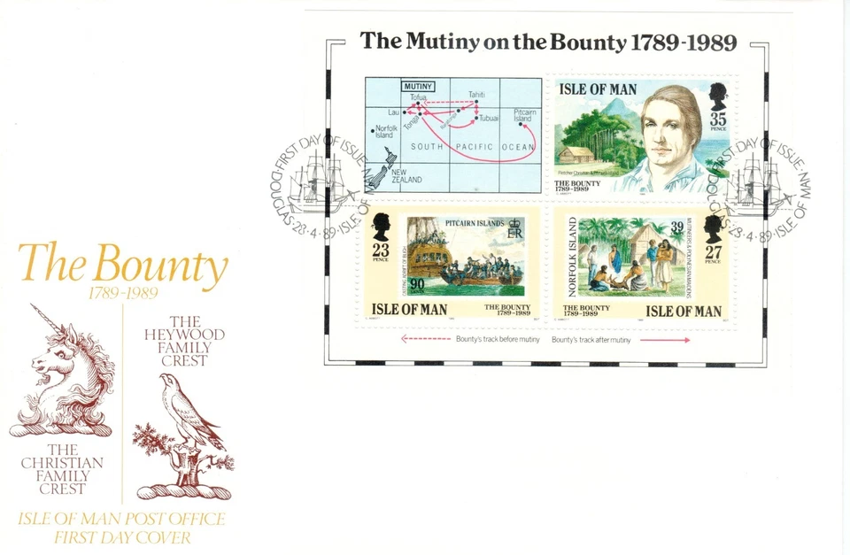 IOM FDC 1989 Bicentenary of Mutiny on the Bounty Miniature Sheet SG MS415