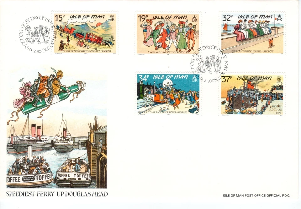 IOM FDC 1990 edwardian Postcards SG 433-437