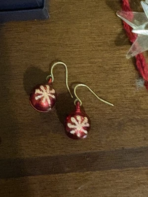 Vtg MINIATURE GLASS BALL Christmas ORNAMENT EARRINGS Shiny RED Brite Jingle Bell