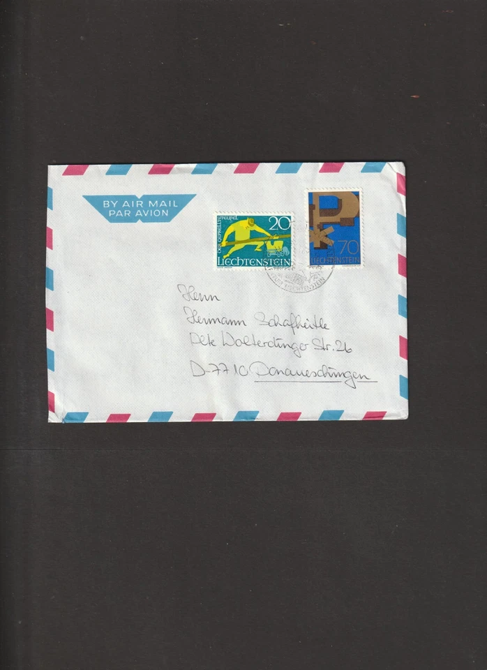 Liechtenstein Airmail Cover Mi. No. 484 + 518 "Vaduz-Daueschingen 22.10.87"