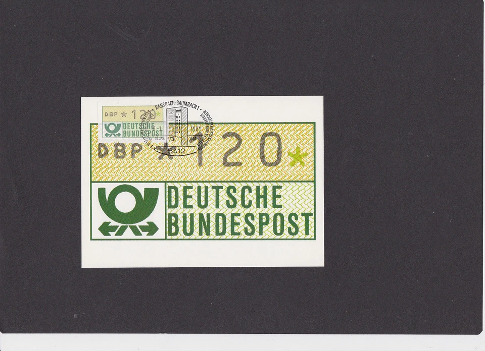 offz. German Federal Post Office " ATM Maximum Card 1.20 " Ransbach-Baumbach 10.01.1981