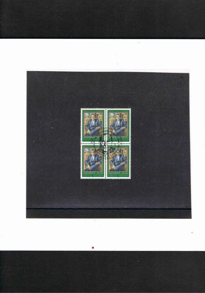 UN Vienna - Block of 4 - Mi. No. 68 "T. Lie - UN Secretary General" Stamped