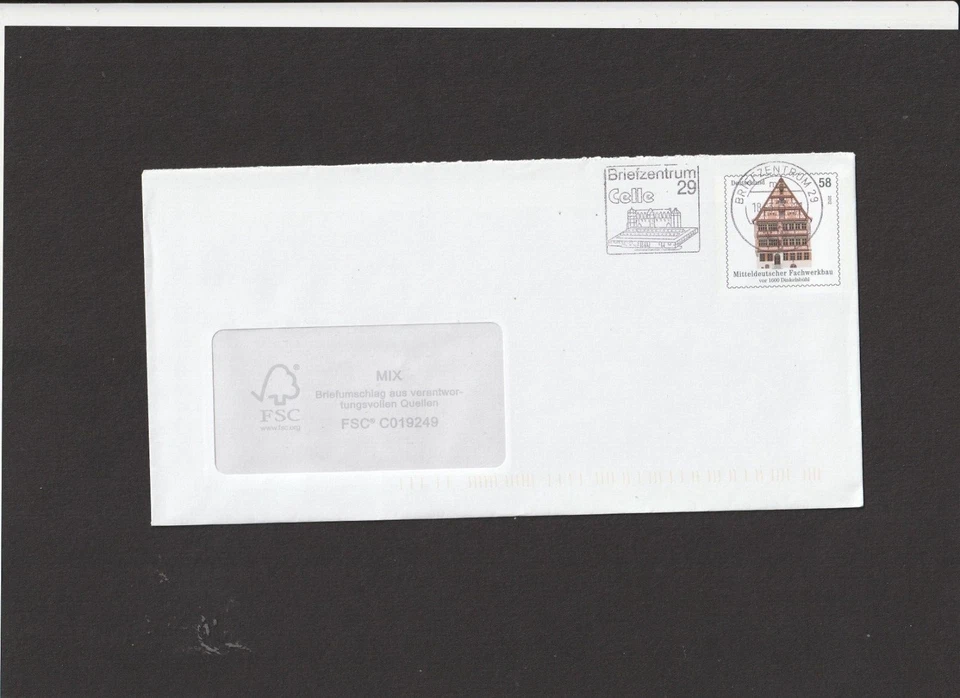 DBP postal stationery "USo 280 B" advertising stamp" letter center 29 Celle" real used xx2
