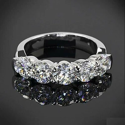 5 Stone 2.20 Ct Vvs+Near White Moissanite Diamond Wedding Solid Silver Ring
