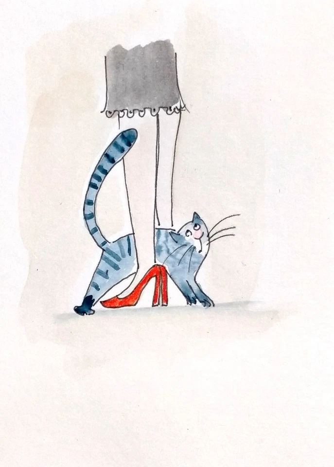 NEW! ACEO Watercolor Painting CAT Xmas Funny Original Art card signed