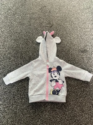 Disney Primark Minnie Mouse Light Grey Baby Girl Zip Up Hoodie Age 3-6 Months
