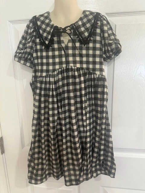 Bonnie Jean Size 8 Girls Black & Gray Plaid Short Sleeve Sparkle Dress. SALE!!!