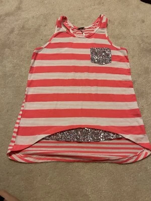 Girls neon pink & white stripe tank top by Poof Girl size small