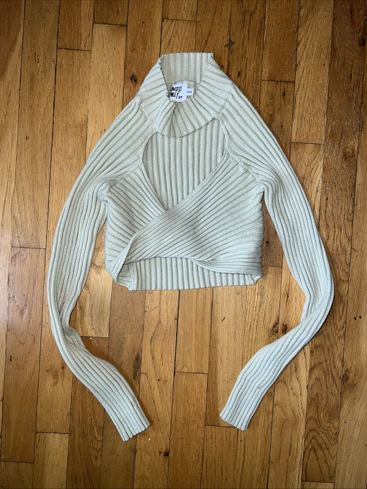 Wild Fable Ribbed Juniors Yellow Long Sleeve V-Neck Shirt XS New