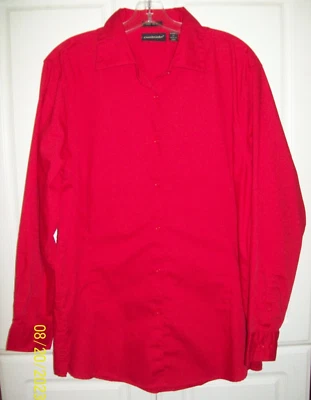 Ninedaily Women Large Knit Top Shirt Tunic Red Long Sleeve Lapel V Neck Rayon Sm