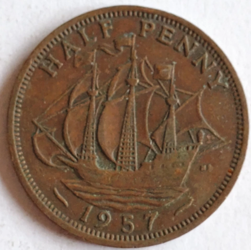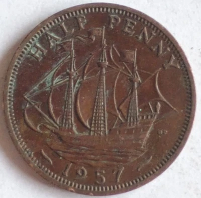 1957 Great Britain Elizabeth II Half Penny Coin