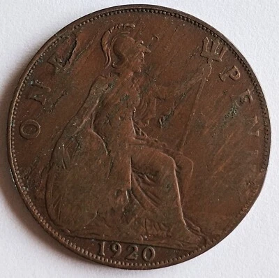 1920 One Penny UK George V Coin Vintage 1d