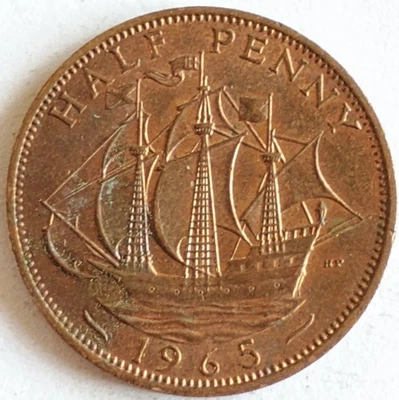 1965 Great Britain Half Penny Coin Elizabeth II