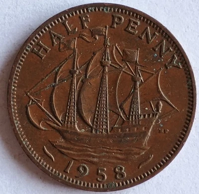 1958 Great Britain Elizabeth II Half Penny Coin