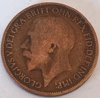 1913 One Penny King George V British Coin 1d