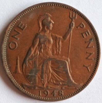 1948 One Penny King George VI British Coin 1d
