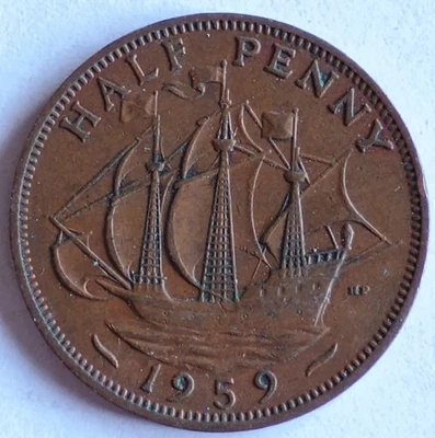 1959 Great Britain Elizabeth II Half Penny Coin