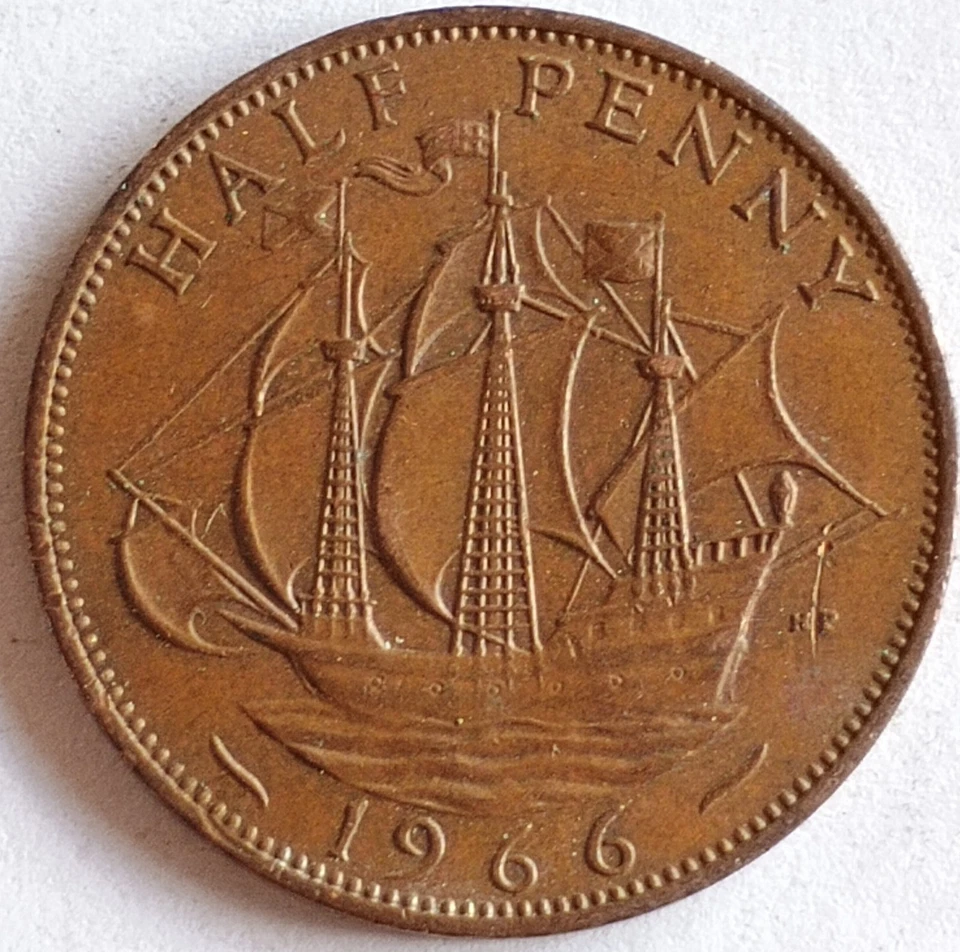1966 Great Britain Half Penny Coin Elizabeth II
