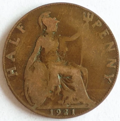 1921 George V Half Penny British Coin