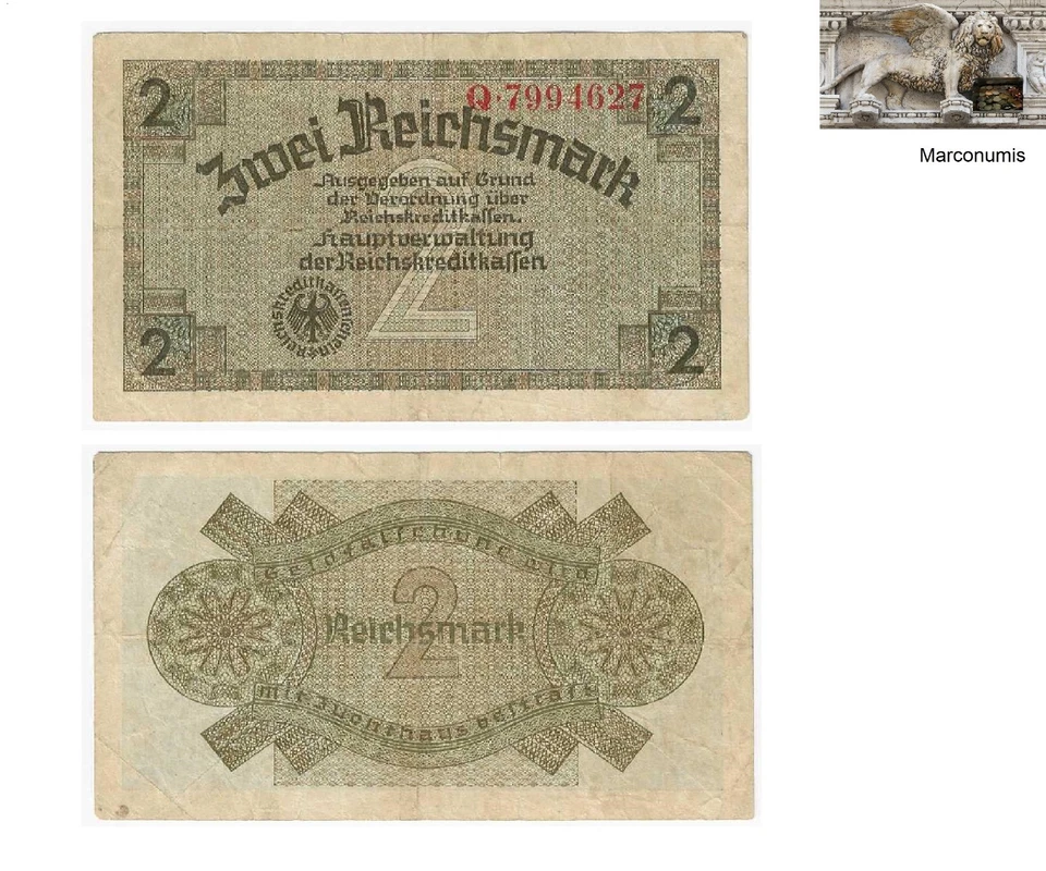 Two ReichsMarks German banknote issued in 1944 Q vf