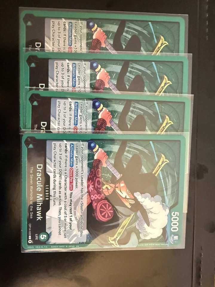 One Piece Dracule Mihawk NM Leader OP14 (x4 playset) The Azure Sea's Seven