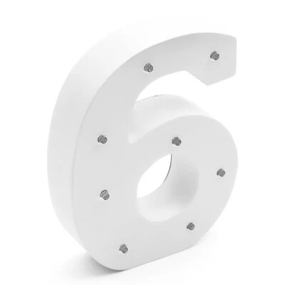 1 x 22cm LED Light Up Number 6 White Birthday Party Celebration Stand / Hang
