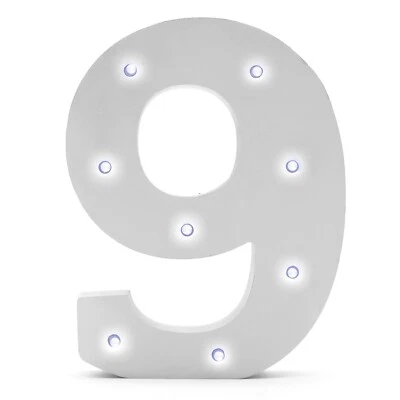 1 x 16cm LED Light Up Number 9 Birthday Anniversary Retirement White